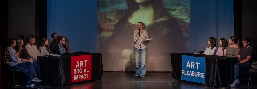 Dva debatna tima “Art for Pleasure” i “Art of Social Impact”, debatovali su o temi teatra i uloge umjetnosti. Debatni tim “Art for Pleasure” je iznio argumente da je umjetnost subjektivna, i da vrijednost umjetnosti leži u ličnom uživanju, a ne u društvenim ishodima, Zatim da je anti-elitistički suditi o umjetnost po društvenom utjecaju i da takvo mišljenje promoviše elitističke standarde. Dalje su naveli da je osnovna svrha umjetnosti zabava, a ne da bi služila kao korektiv društva. Također da se kulturna relevantnost posmatra kroz prizmu popularnosti i da je cenzura nepoželjna u umjetničkom izričaju.